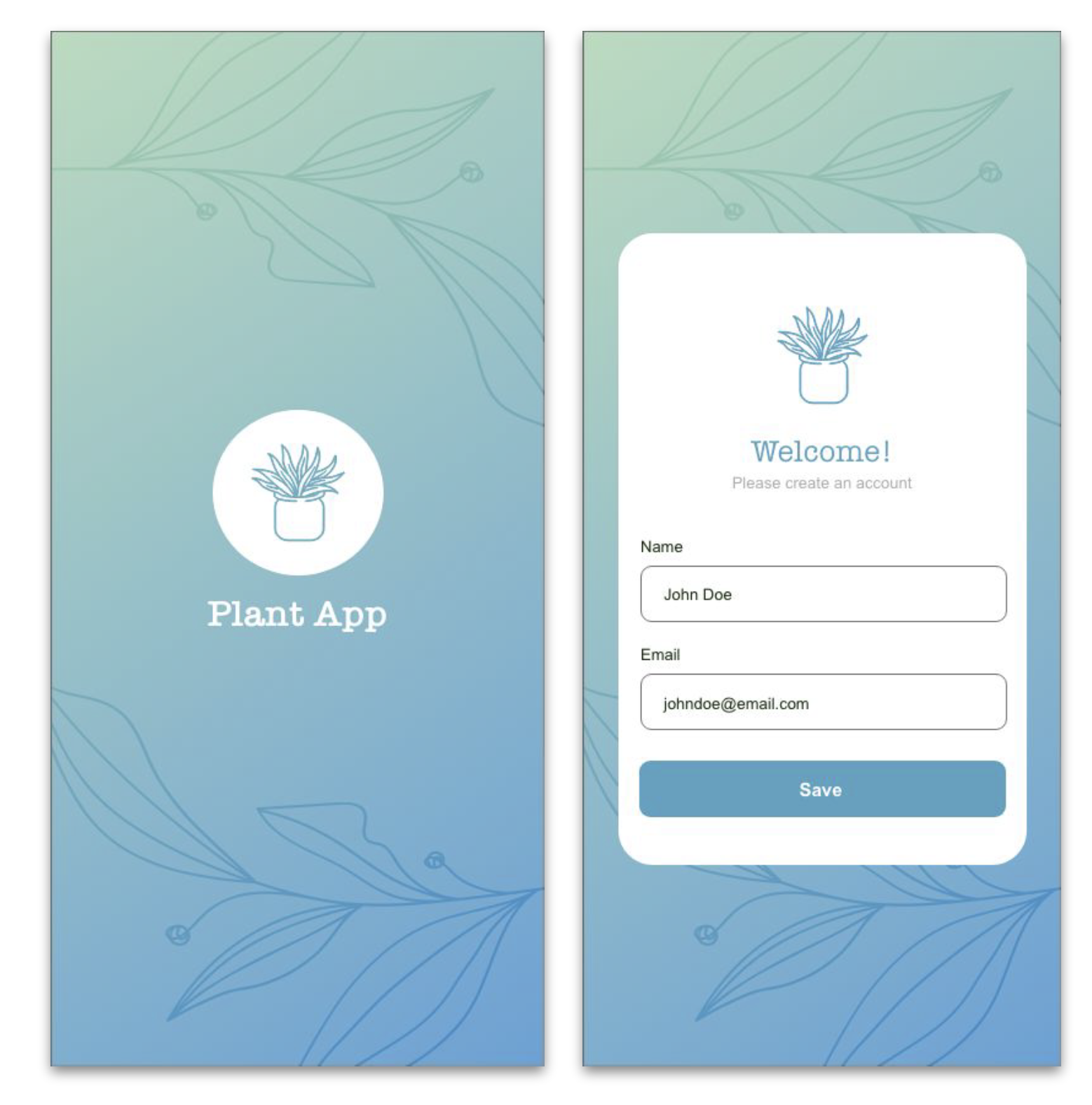 Once the app has loaded the user is prompted to create an account. Accounts will allow users to save custom profiles to store their plants data.